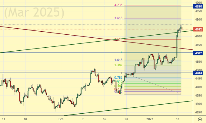 Пшеница (мартовский контракт, CME Group, исполнение 14.03.2025)