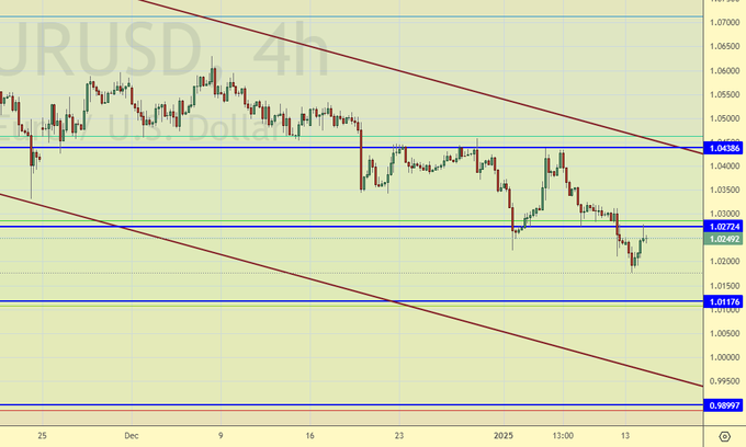 Продажа: нет. Кто в позиции от 1.0440, держите стоп на 1.0322. Цель: 0.9900.