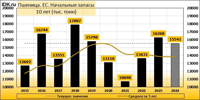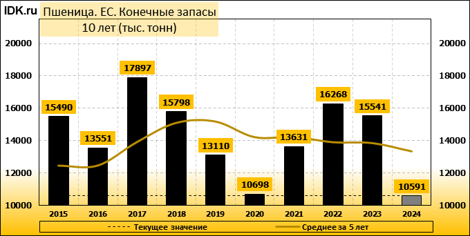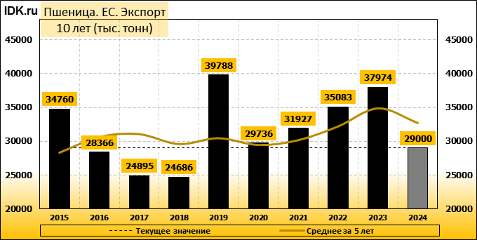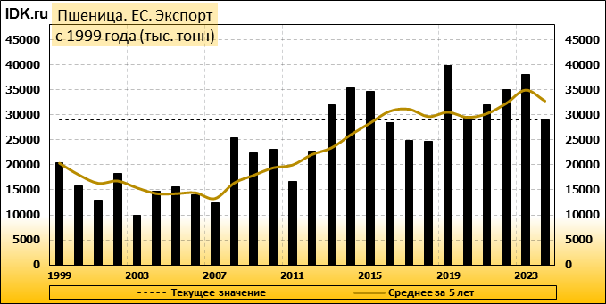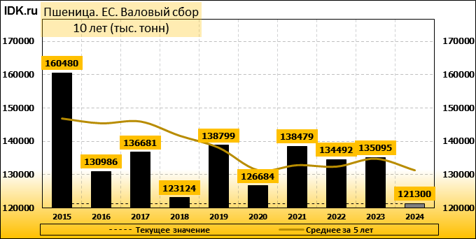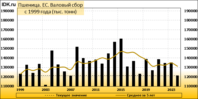 Международный совет по зерну (IGC) заявил, что он сократил свой прогноз мирового производства пшеницы на 2024/25 годы, частично из-за ухудшения прогноза для Европейского союза. Межправительственный орган в своем ежемесячном отчете сократил прогноз урожая пшеницы на 2024/25 год на 2 миллиона тонн до 796 миллионов тонн. Производство пшеницы в ЕС было пересмотрено в сторону снижения до 120,3 млн тонн, что ниже предыдущего прогноза в 121,8 млн тонн и резко ниже показателя предыдущего сезона в 133,1 млн тонн. Урожай ЕС пострадал, в частности, из-за самого низкого урожая во Франции за последние 40 лет, а также резкого падения производства в Германии, так как два крупнейших производителя пшеницы в блоке пережили многократные проливные дожди в прошлом году.