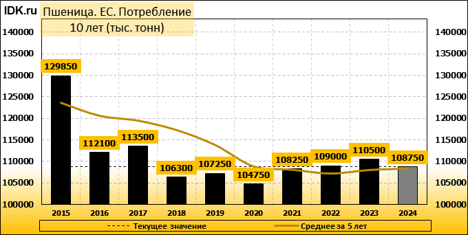 Потребление: показатель не изменился и составляет 108750 тысяч тонн.
