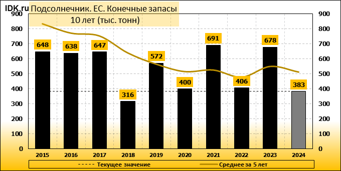 Конечные запасы: составят 383 тысячи тонн. Оценка с последнего отчета снизилась на -0.26 процента.