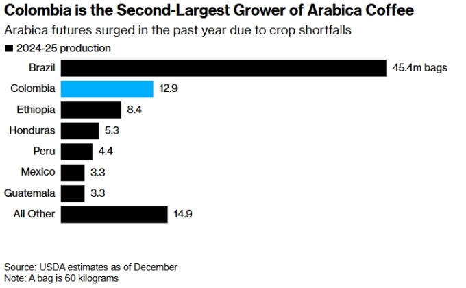 Этот шаг повлиял на перспективы поставок кофе в то время, когда наиболее активные фьючерсы на арабику резко выросли на фоне неурожая у основных производителей. Колумбия является третьим по величине производителем кофе в мире и вторым по величине производителем арабики, которая используется для специальных напитков, согласно данным Министерства сельского хозяйства США.