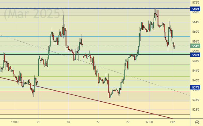 Пшеница (мартовский контракт, CME Group, исполнение 14.03.2025)