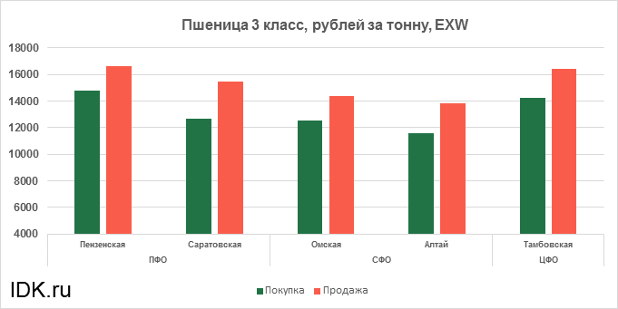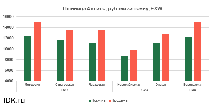 За прошедшую неделю с 27.01.2025 по 31.01.2025 средняя цена на пшеницу 4-го класса, согласно выставленным заявкам трейдеров, упала по всем округам на 99 рублей. Средняя цена составляет 12688 рублей за тонну.