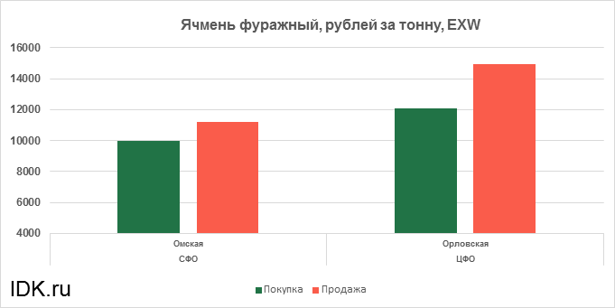 За прошедшую неделю с 27.01.2025 по 31.01.2025 средняя цена на фуражный ячмень, согласно выставленным заявкам трейдеров, выросла по всем округам на 90 рублей. Средняя цена составляет 12046 рублей за тонну.