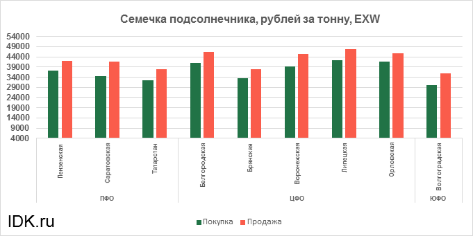 За прошедшую неделю с 27.01.2025 по 31.01.2025 средняя цена семечки подсолнечника, согласно выставленным заявкам трейдеров, упала по всем округам на 3257 рублей. Средняя цена составляет 37918 рублей за тонну.