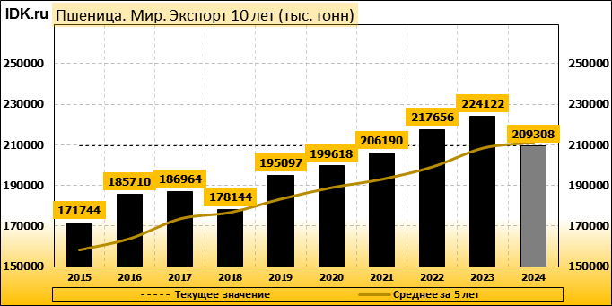 Экспорт: оценивается в 209308 тысяч тонн. За месяц показатель упал на -1.42 процента.