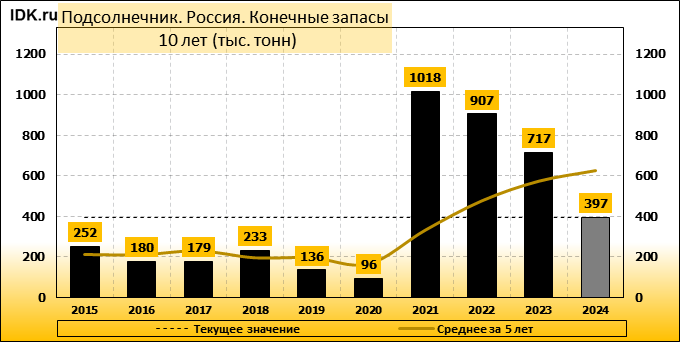 Конечные запасы: составят 397 тысяч тонн. Оценка с последнего отчета не изменилась.