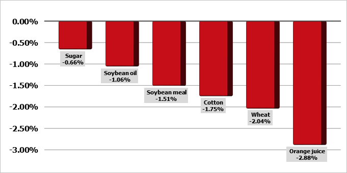 Пшеничный комплекс понес очередные потери на всех трех рынках во вторник. Фьючерсы на SRW в Чикаго снижались на 11-13 1/4 центов за день. Фьючерсы KC HRW падали на 9-15 центов по сравнению с предыдущими месяцами. Яровая пшеница MPLS теряет от 6 до 9 центов. Вчера утром USDA сообщило о частной экспортной продаже 130 000 тонн белой пшеницы в Южную Корею для отгрузки в 2024/25 годах. Экспорт пшеницы из ЕС с начала июля по 2 марта составил 13,93 млн тонн, что ниже 22,04 млн тонн за аналогичный период прошлого года. Япония объявила тендер на закупку 94 282 млн тонн пшеницы из США, Канады и Австралии, причем 35 882 млн тонн придется на долю США.
