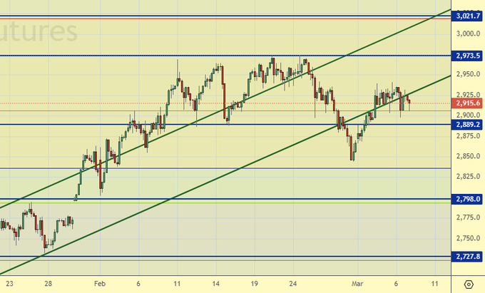 Продажа: после падения ниже 2885. Стоп: 2930. Цель: 2500. Считайте риски!