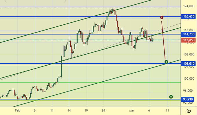 Продажа: при подходе к 120000. Стоп: 122000. Цель: 105000. Или сейчас 112850. Стоп: 116200. Цель: 93000. Считайте риски.