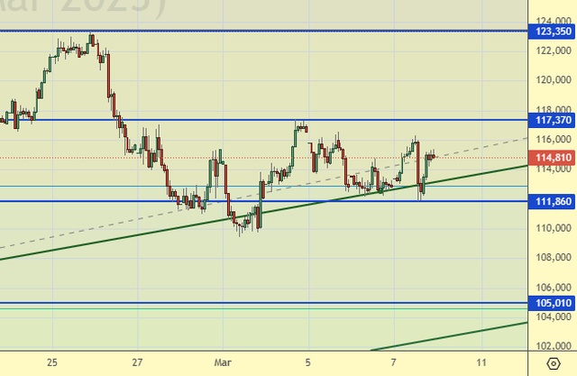 Продажа: при подходе к 120000. Стоп: 122000. Цель: 105000. Кто в позиции от 112850, держите стоп на 116200. Цель: 93000.