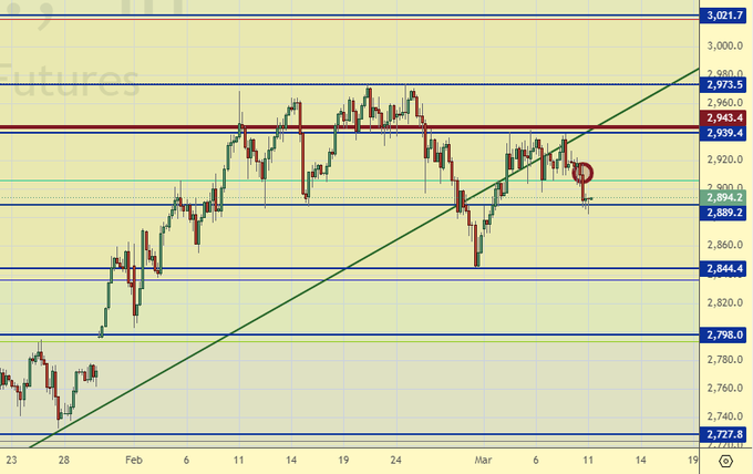 Продажа: нет. Кто в позиции от 2918, держите стоп на 2942. Цель: 2500 (2120).