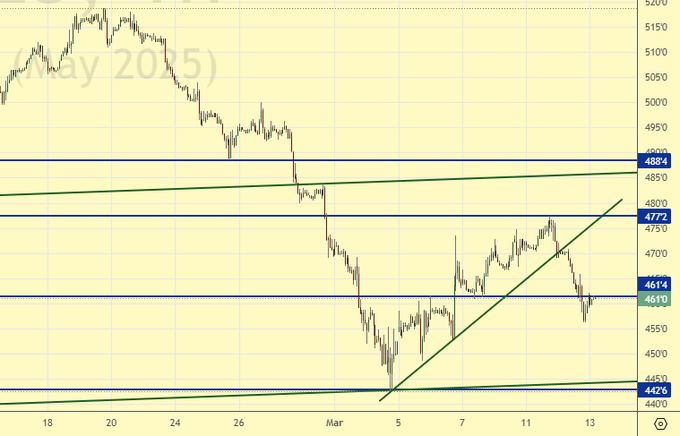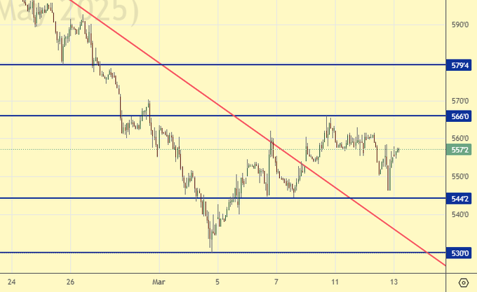 Пшеница (майский контракт, CME Group, исполнение 14.05.2025)