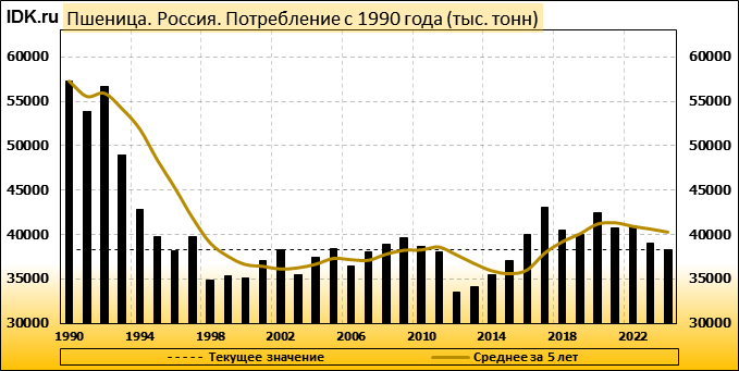 Потребление: показатель не изменился и составляет 38250 тысяч тонн.