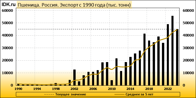 Экспорт: оценивается в 45000 тысяч тонн. За месяц показатель упал на -1.1 процента.