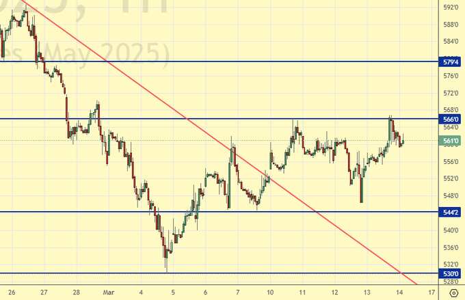 Пшеница (майский контракт, CME Group, исполнение 14.05.2025)