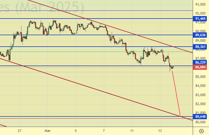 Продажа: нет. Кто в позиции от 88622, перенесите стоп на 88250. Цель: 81000.