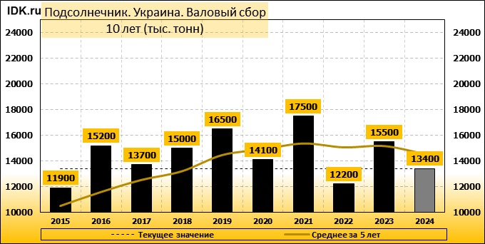 Валовый сбор: оценка пересмотрена в сторону повышения до 13400 тысяч тонн. Показатель вырос на 3.88 процента.