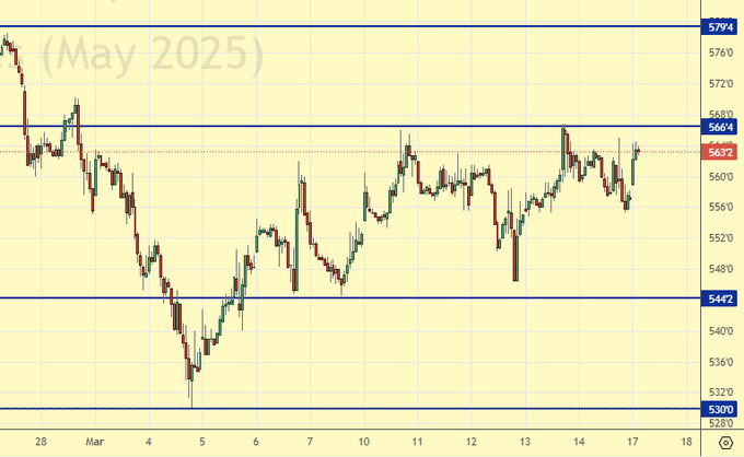 Пшеница (майский контракт, CME Group, исполнение 14.05.2025)