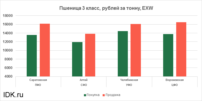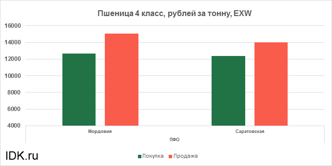 За прошедшую неделю с 10.03.2025 по 14.03.2025 средняя цена на пшеницу 4-го класса, согласно выставленным заявкам трейдеров, выросла по всем округам на 146 рублей. Средняя цена составляет 13603 рубля за тонну.