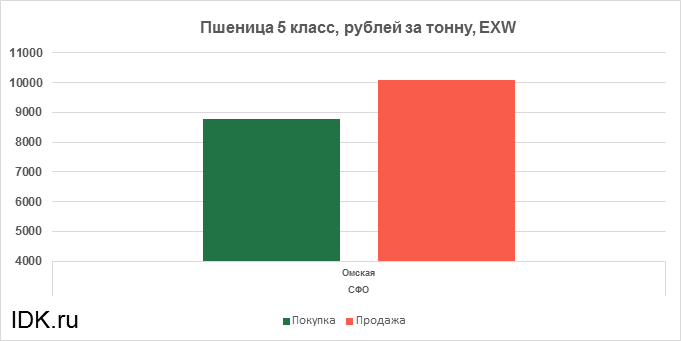 За прошедшую неделю с 10.03.2025 по 14.03.2025 средняя цена на пшеницу 5-го класса, согласно выставленным заявкам трейдеров, по всем округам составляет 12728 рублей за тонну.