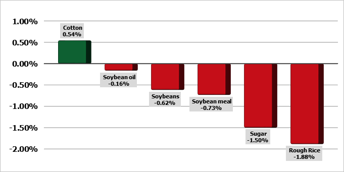 Соевые бобы торговались с потерями от 4 до 6 центов в среду. Фьючерсы на соевую муку снизились на 2,70 доллара за тонну. Фьючерсы на соевое масло снизились на 4 пункта. Текущее соотношение сои и кукурузы составляет 2,24, что говорит в пользу перехода на кукурузные гектары. S&P Global оценивает общую площадь посевов сои в 2024 году в 83,3 млн акров, что соответствует январской оценке и на 3,8 млн акров меньше, чем год назад. Согласно опросу производителей, Allendale оценивает посевные площади в 84,28 млн акров. Abiove оценивает урожай сои в Бразилии в 170,9 млн тонн, что на 0,8 млн тонн меньше предыдущей оценки.