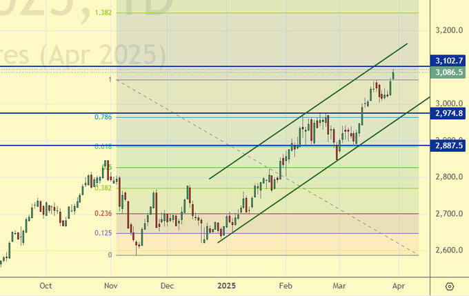 Сценарий роста: рассматриваем майский фьючерс, дата экспирации 28 апреля. Откатили, но нам бы хотелось получить 3.200 для нового лонга. Ждем более низких уровней. Лето впереди.