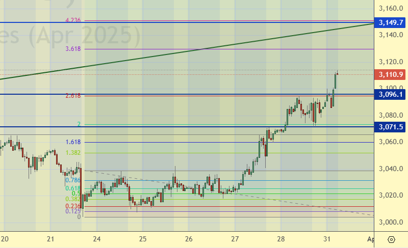 Золото сорвалось с цепи. Мы продолжаем уходить вверх. Покупки с плечом рекомендовать не можем. Без плеча можно брать и сейчас, при условии, что вы сможете усредниться на более низких уровнях. Это тот актив, который если и подешевеет, то не на много.