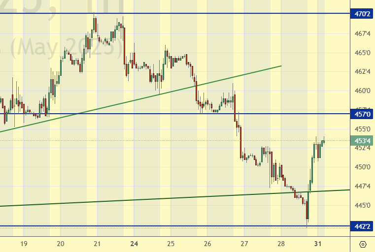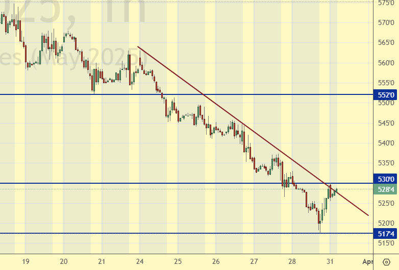Пшеница (майский контракт, CME Group, исполнение 14.05.2025)