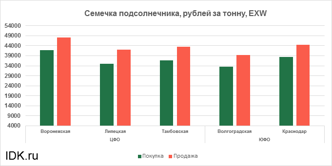 За прошедшую неделю с 31.03.2025 по 04.04.2025 средняя цена семечки подсолнечника, согласно выставленным заявкам трейдеров, упала по всем округам на -769 рубль. Средняя цена составляет 40963 рубля за тонну.