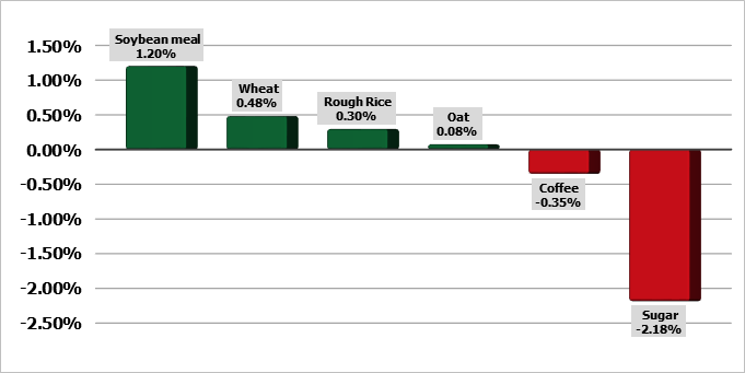 В среду на рынке пшеницы наблюдалась смешанная динамика, при этом сильные позиции занимают контракты на твердую краснозерную пшеницу. Чикагские фьючерсы SRW снижались с потерями от долей до 2 центов. Контракты на HRW в Канзас-Сити росли на 3-5 центов в полдень. Яровая пшеница MPLS росла на 4-5 центов в первые месяцы. USDA опубликует данные по экспортным продажам в четверг. Торговые компании ожидают от чистого сокращения на 100 000 тонн до чистых продаж на 400 000 тонн для старого урожая. Продажи нового урожая, по оценкам, составят 0-200 000 тонн. Мировые конечные запасы, согласно опросу аналитиков Reuters, ожидаются на уровне 0,31 млн тонн до 260,39 млн тонн.
