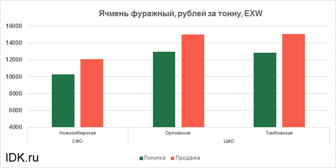 За прошедшую неделю с 07.04.2025 по 11.04.2025 средняя цена на фуражный ячмень, согласно выставленным заявкам трейдеров, выросла по всем округам на 355 рублей. Средняя цена составляет 12564 рубля за тонну.