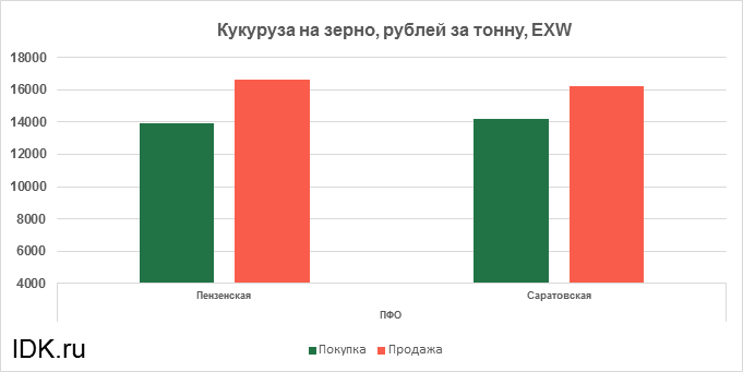 За прошедшую неделю с 07.04.2025 по 11.04.2025 средняя цена кукурузы на зерно, согласно выставленным заявкам трейдеров, выросла по всем округам на 428 рублей. Средняя цена составляет 15233 рубля за тонну.