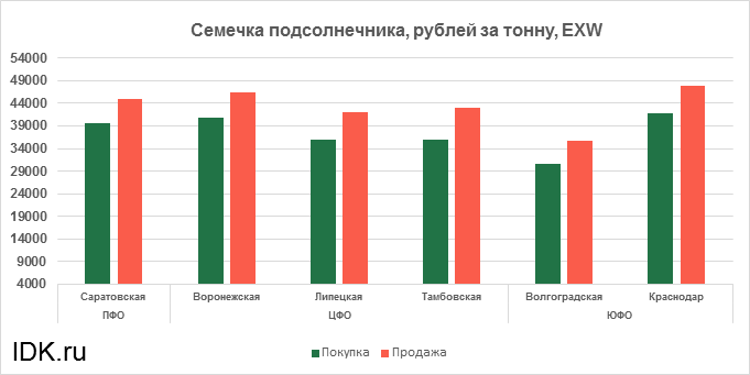 За прошедшую неделю с 07.04.2025 по 11.04.2025 средняя цена семечки подсолнечника, согласно выставленным заявкам трейдеров, выросла по всем округам на 1194 рубля. Средняя цена составляет 42185 рублей за тонну.