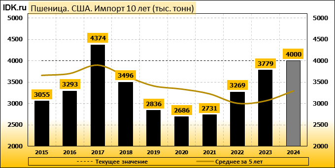 Импорт: составит 4000 тысяч тонн. Значение по прошествии месяца поднялось на 5.26 процента.