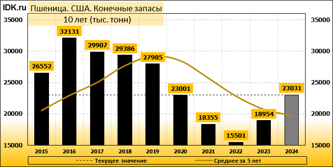 Конечные запасы: составят 23031 тысячу тонн. Оценка с последнего отчета подросла на 3.3 процента.