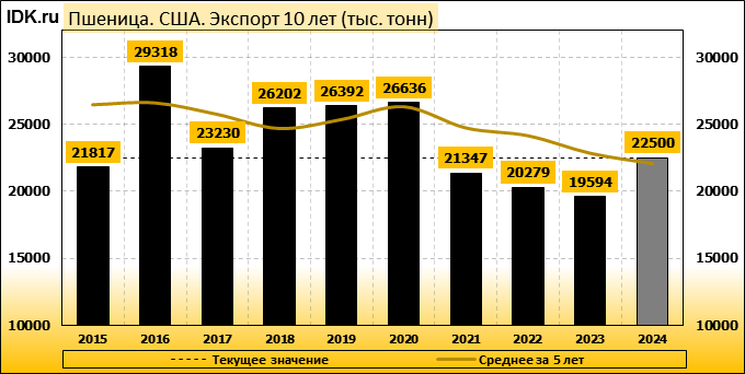 Экспорт: оценивается в 22500 тысяч тонн. За месяц показатель упал на -2.17 процента.