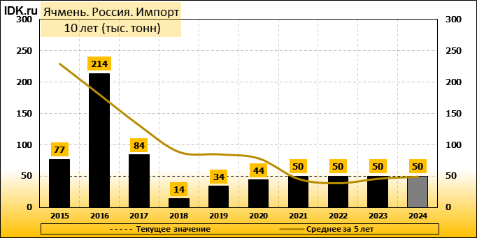 Импорт: составит 50 тысяч тонн. Значение по прошествии месяца не изменилось.