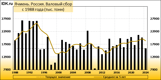 Валовый сбор: оценка не изменилась и составляет 16250 тысяч тонн.