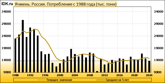 Потребление: показатель не изменился и составляет 13700 тысяч тонн.