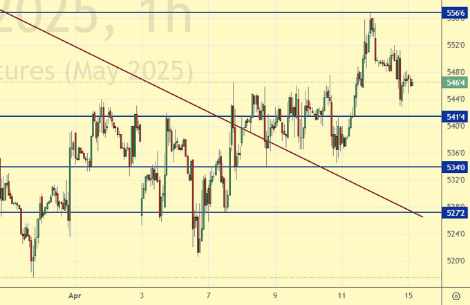Продажа: нет. Кто в позиции от 549.2, перенесите стоп на 555.0. Цель: 500.0.