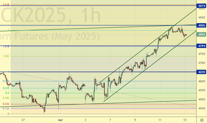 Кукуруза (майский контракт, CME Group, исполнение 14.05.2025)