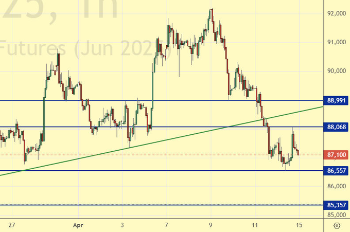 Продажа: при касании 89000. Стоп: 90200. Цель: 83000.