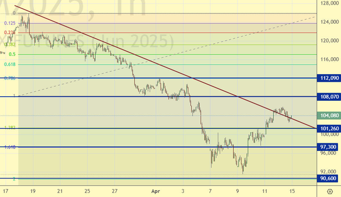 «Не исключено, что мы увидим с вами укрепление перед Днем Победы до 83000», – это гипотеза. И она продолжает развиваться на укрепление. И не важно, что на границе тучи ходят хмуро. Там Трамп обмолвился, что для России он выставил дедлайн. Посмотрим. Нельзя пропускать рывок вверх.