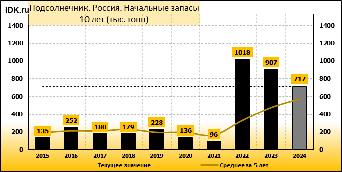 За прошедший месяц министерство сельского хозяйства США (USDA) на 10.04.2025 пересмотрело Баланс подсолнечника для России в сезоне 24/25 следующим образом: