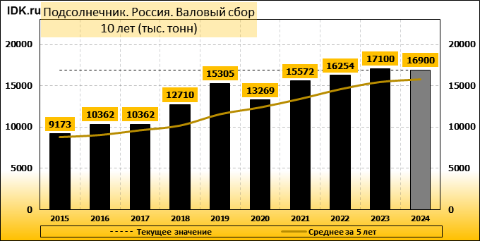 Валовый сбор: оценка не изменилась и составляет 16900 тысяч тонн.