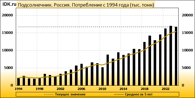 Потребление: показатель не изменился и составляет 16720 тысяч тонн.