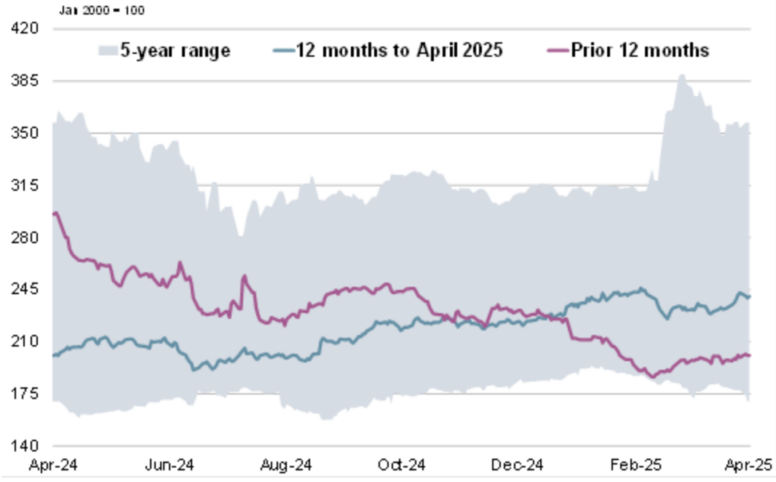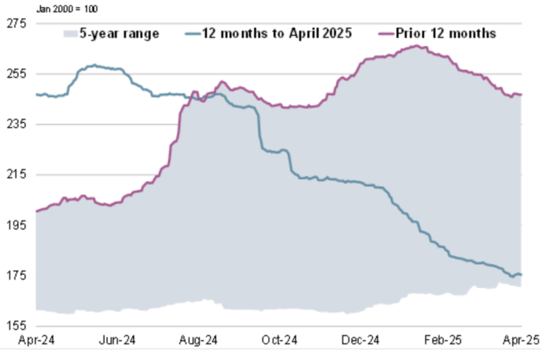 Мировое производство риса в 2024/25 гг. увеличится на 3 млн т м/м в основном за счет повышения оценки для Индии, что также будет связано с незначительным пересмотром в сторону повышения показателей потребления и запасов. Аналогичным образом, прогнозы спроса и предложения на 2025/26 гг. повышены по сравнению с предыдущими. Ожидания в отношении торговли в 2025 и 2026 гг. на несколько процентов выше, чем в марте, при этом объемы поставок из Индии в оба года превысят 23 млн т.