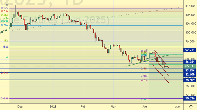 Сценарий роста: рассматриваем июньский фьючерс, дата экспирации 19 июня. От 82250 покупать однозначно.